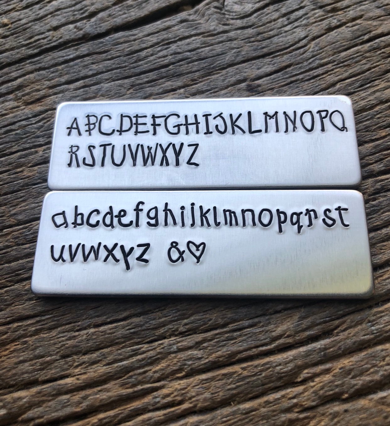 - Remember, these are hand stamped. Characters may be one or all: light in appearance, dark in appearance, letter deep in the metal compared to other letters, crooked, off center, among any other characteristic it may have being handmade. This definitely isn’t a flaw, but adds to the one of a kind keychain that your order will be!